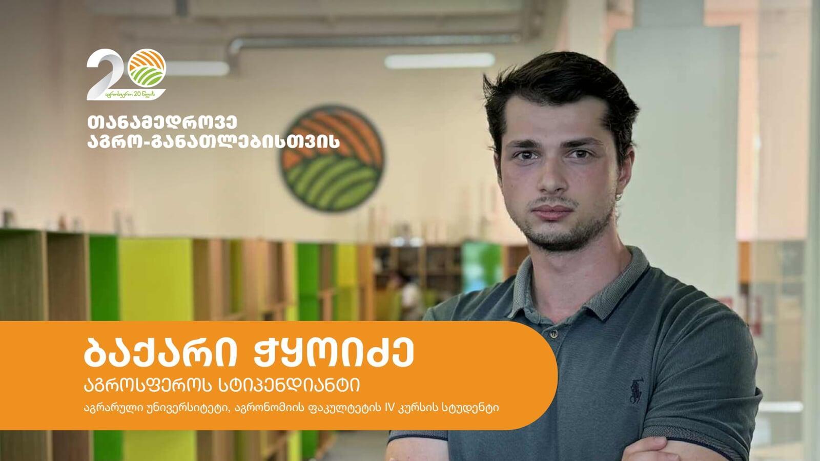 „აგროსფერომ“ წელს სტიპენდია აგრარული უნივერსიტეტის მაღალი მოსწრების 6 სტუდენტს დაუნიშნა. მათ შორის ერთ-ერთი მექანიკის ინჟინერიის პროგრამის სტუდენტი ბაქარ ჭყოიძეა.